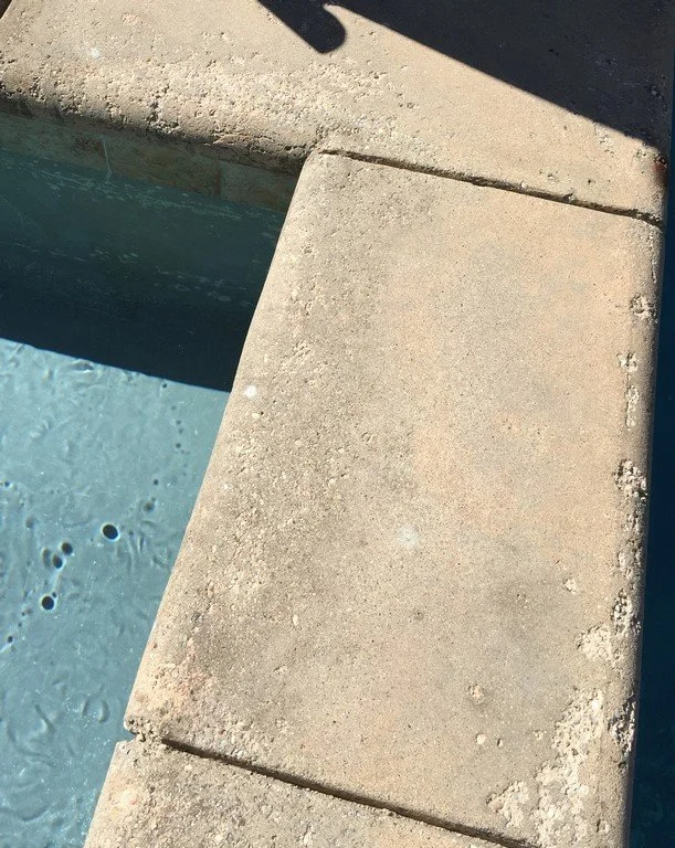 A concrete cantilever pool coping is one of the few materials that can withstand the harsh effects of saltwater on a pool environment. However, even concrete is no match for the natural biodegrading power of salt.