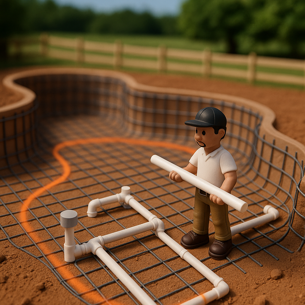 With the steel in place, we move on to the plumbing system—the lifeline of your pool. This is where we install all the underground pipes that keep your water moving clean and clear.