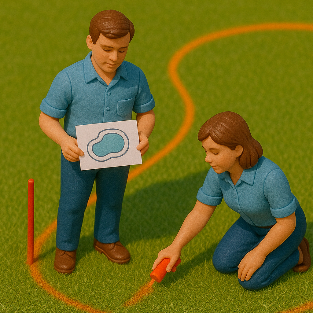 Once everything is approved, we come out and mark the exact shape and location of your pool on the ground. This includes painting the outline, setting the elevations, and checking all the measurements so the pool sits perfectly in your yard.