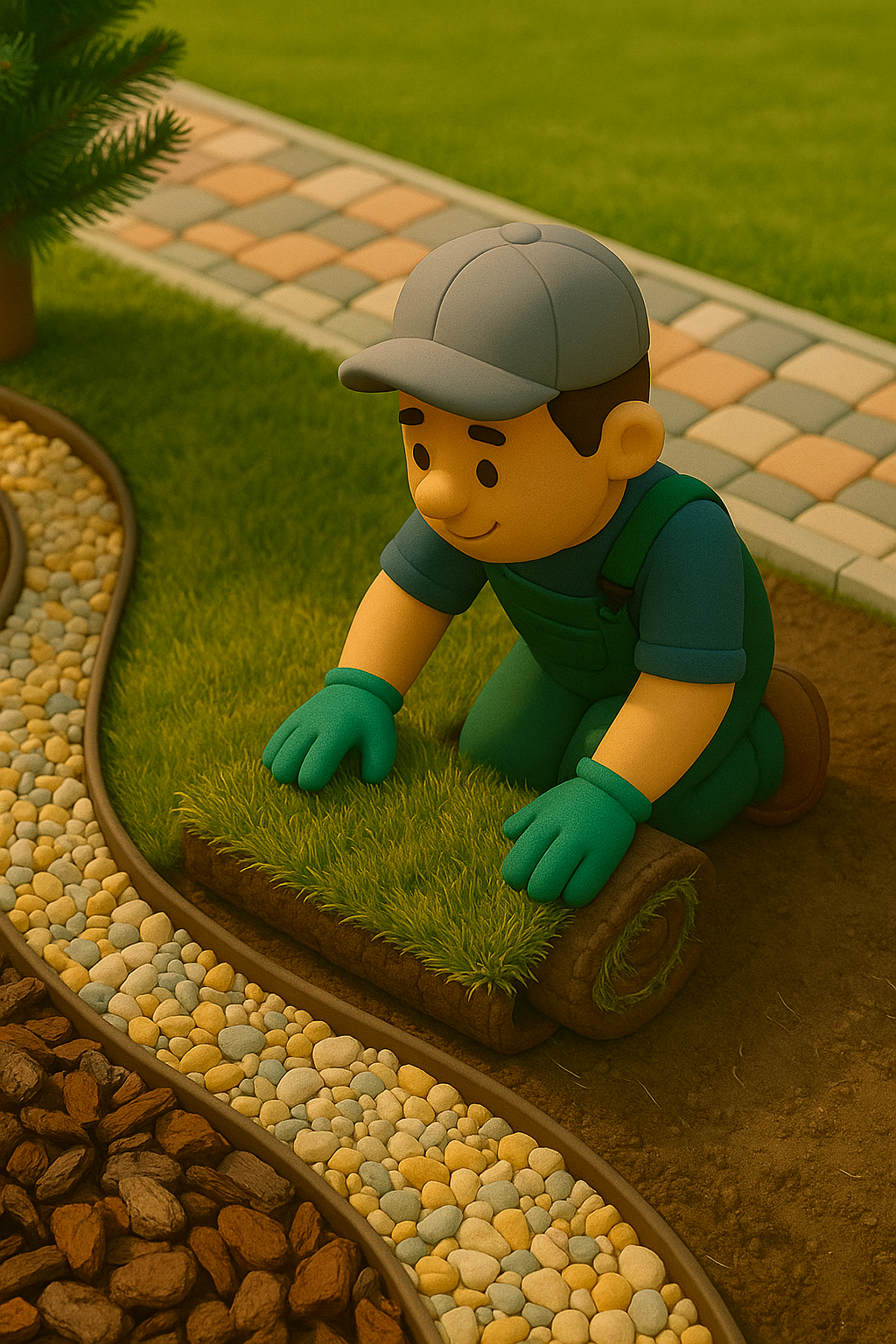 We grade the yard, install any sod, rock, mulch, or plants you selected, and clean up any remaining construction areas. If you’re adding sprinklers or adjusting existing irrigation, we handle that as well to make sure the new grass and plants are set up correctly.