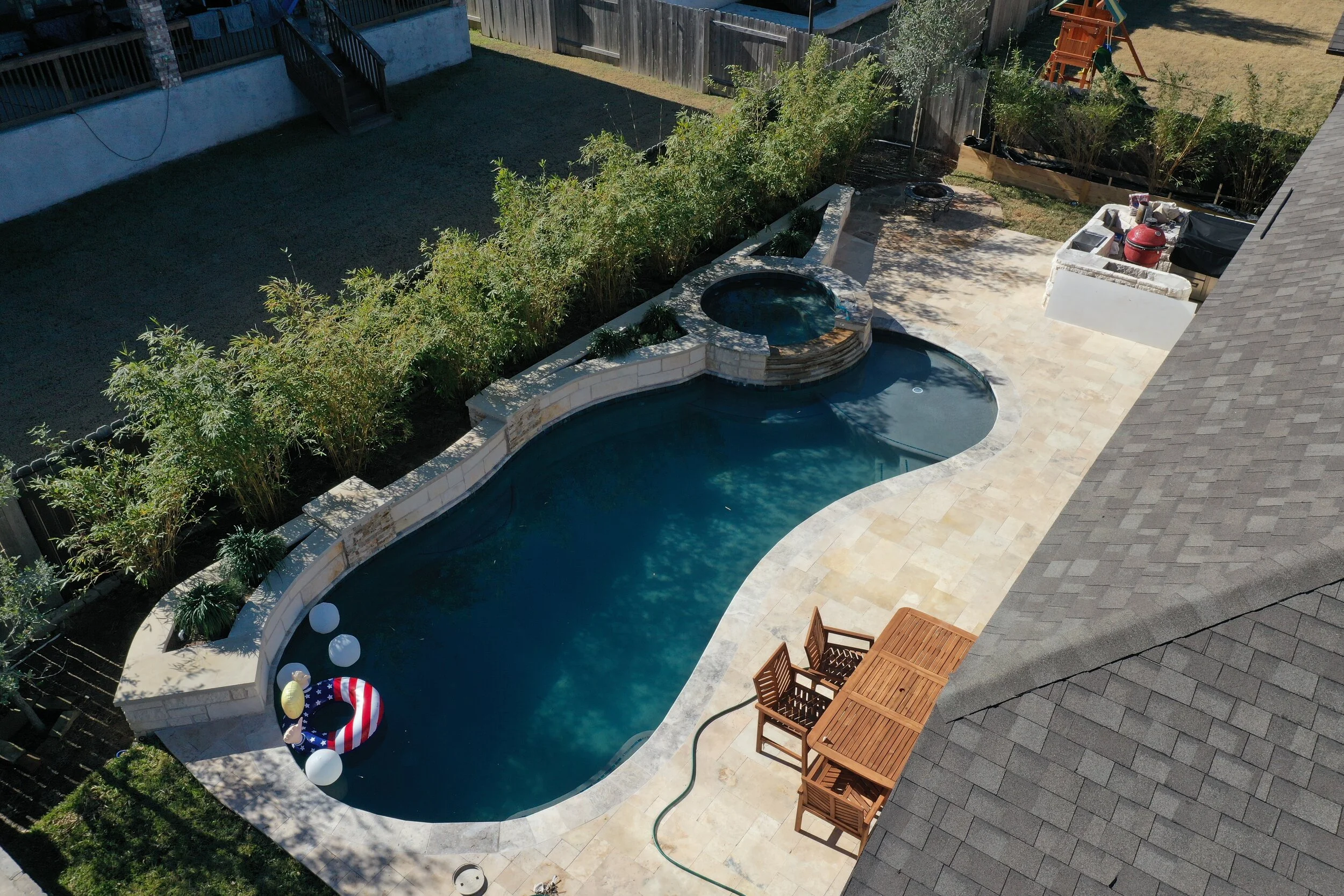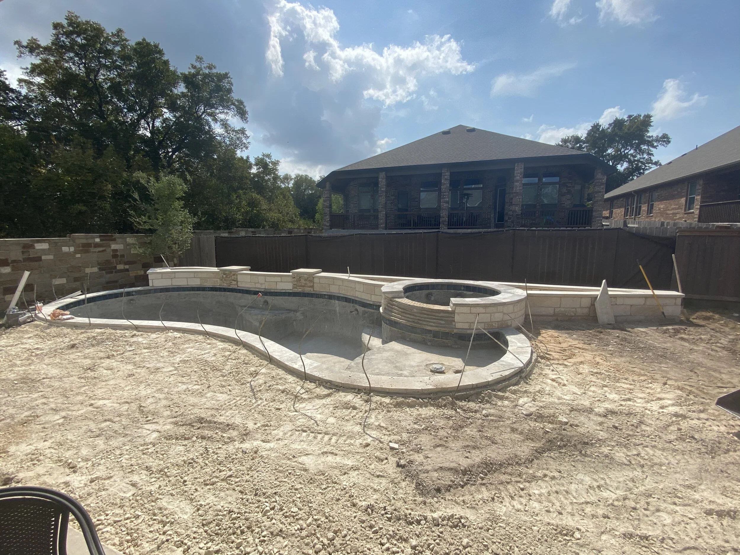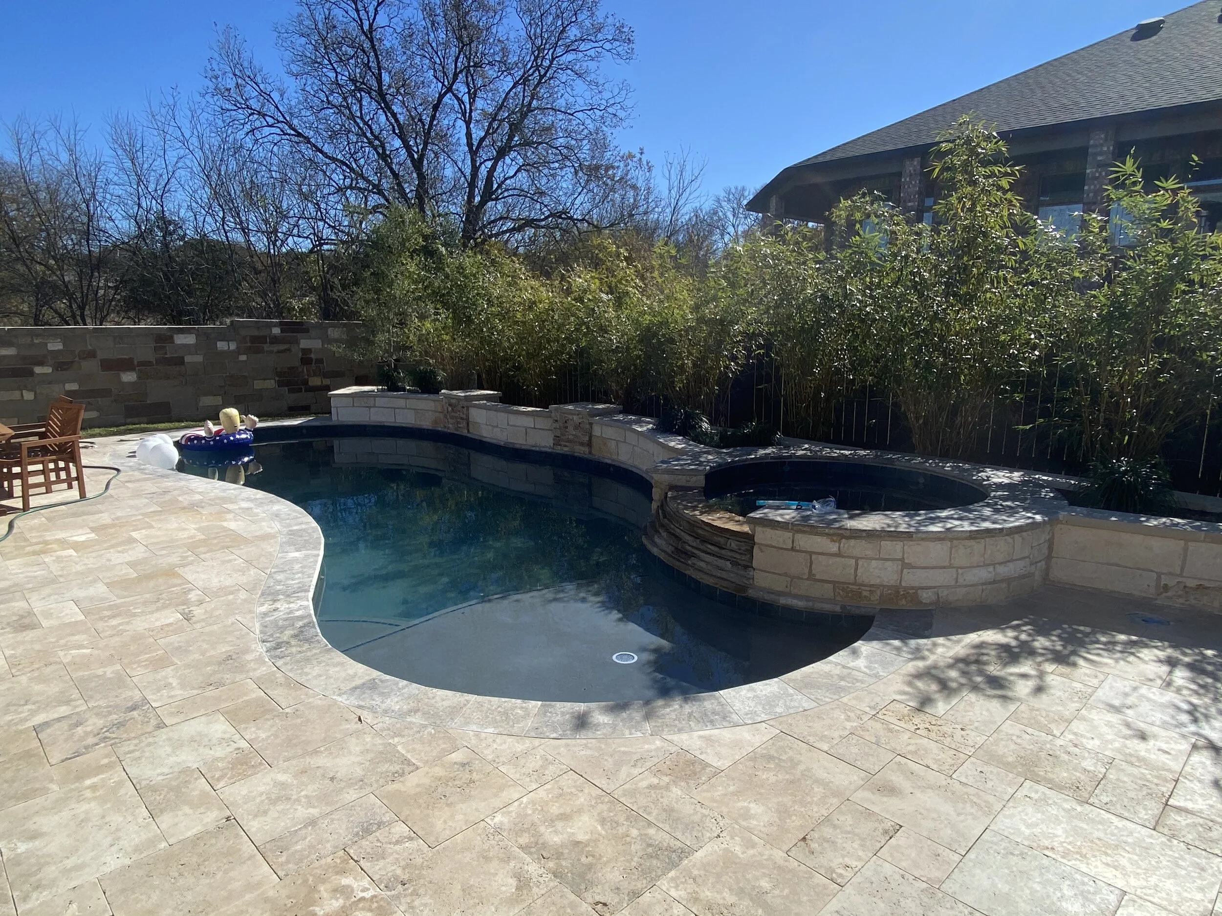 Our team created this stunning backyard paradise in Round Rock Texas, featuring a magnificent swimming pool, a relaxing spa, and a fully equipped outdoor kitchen. The result was simply amazing.