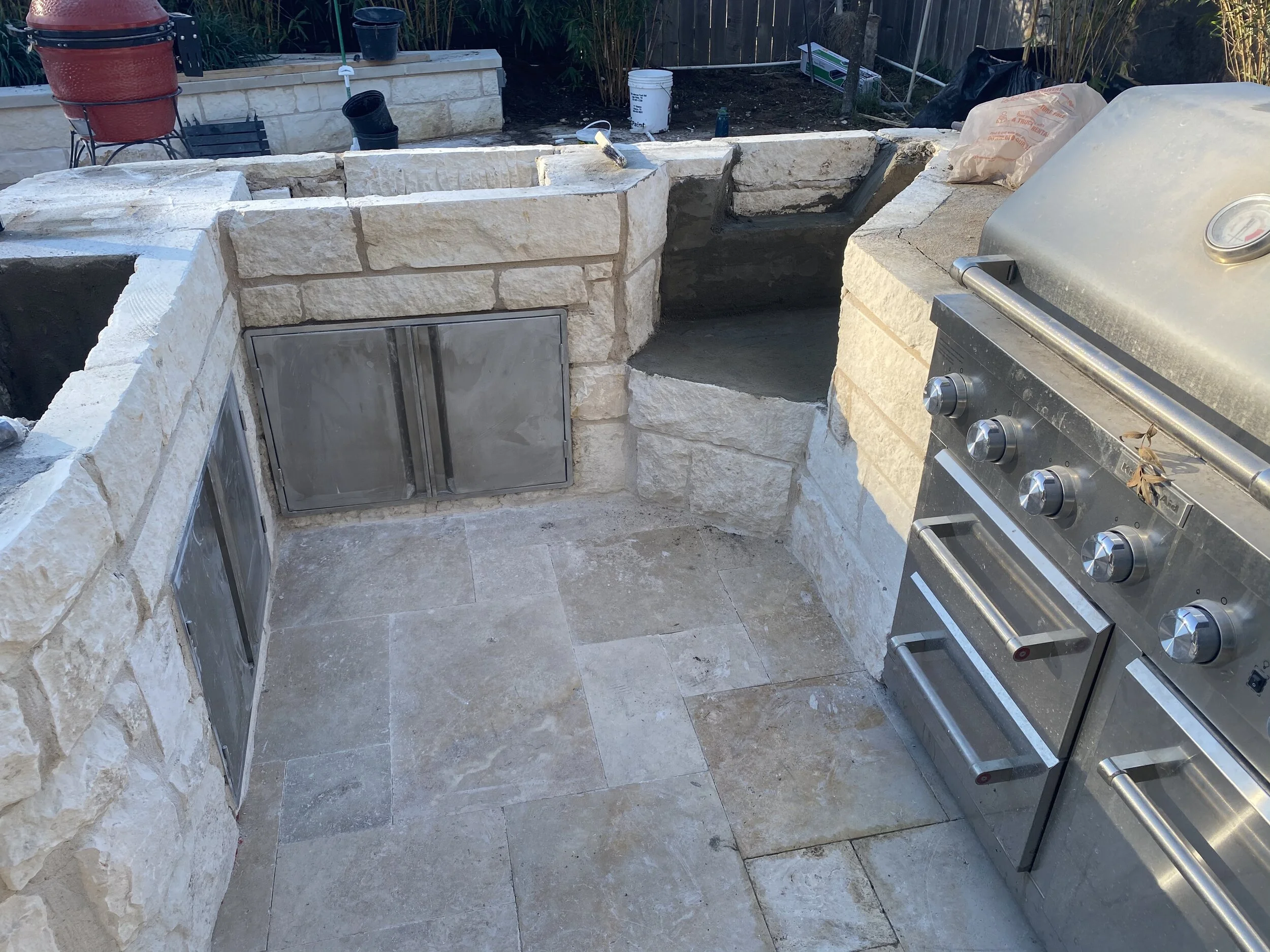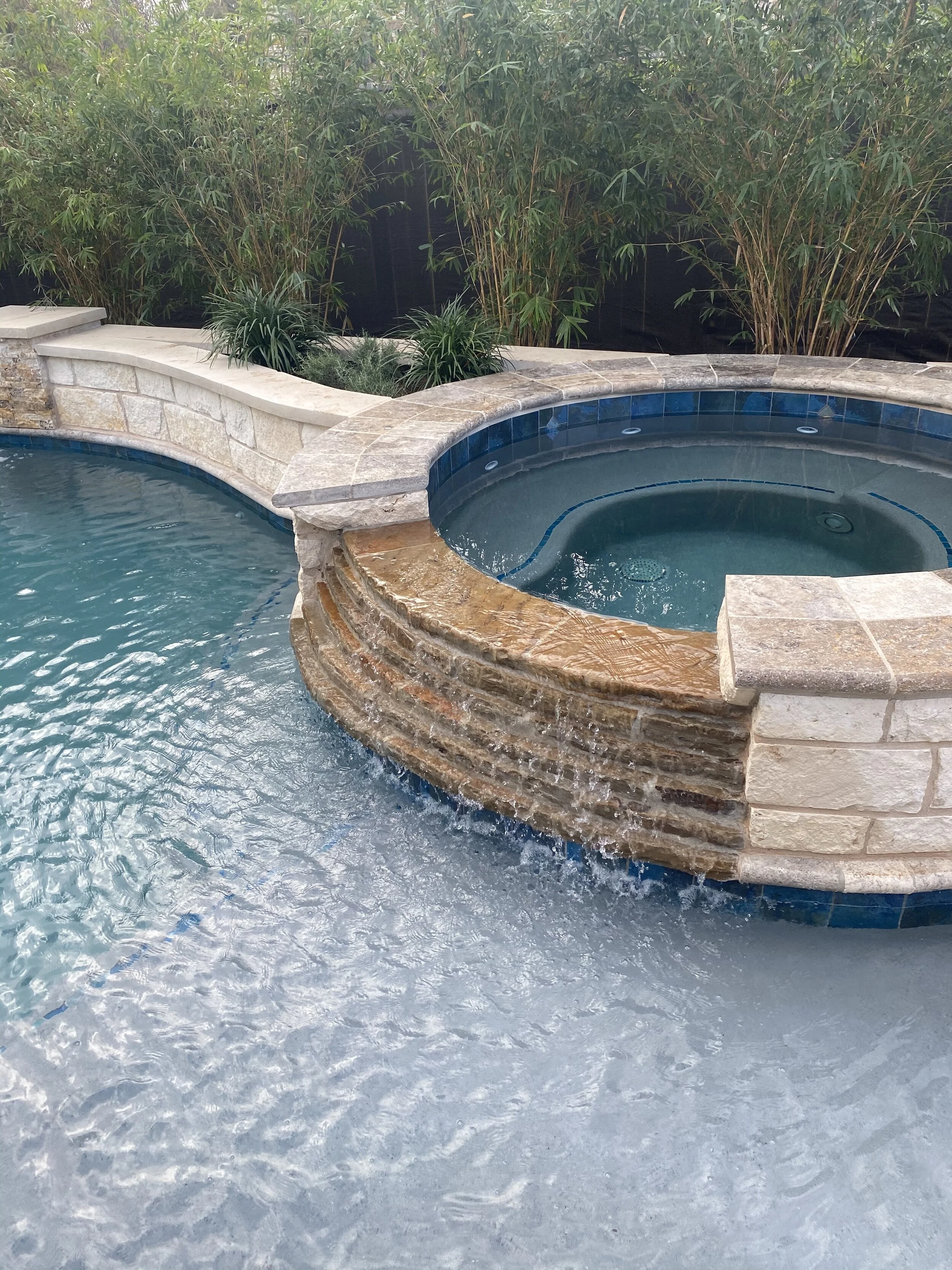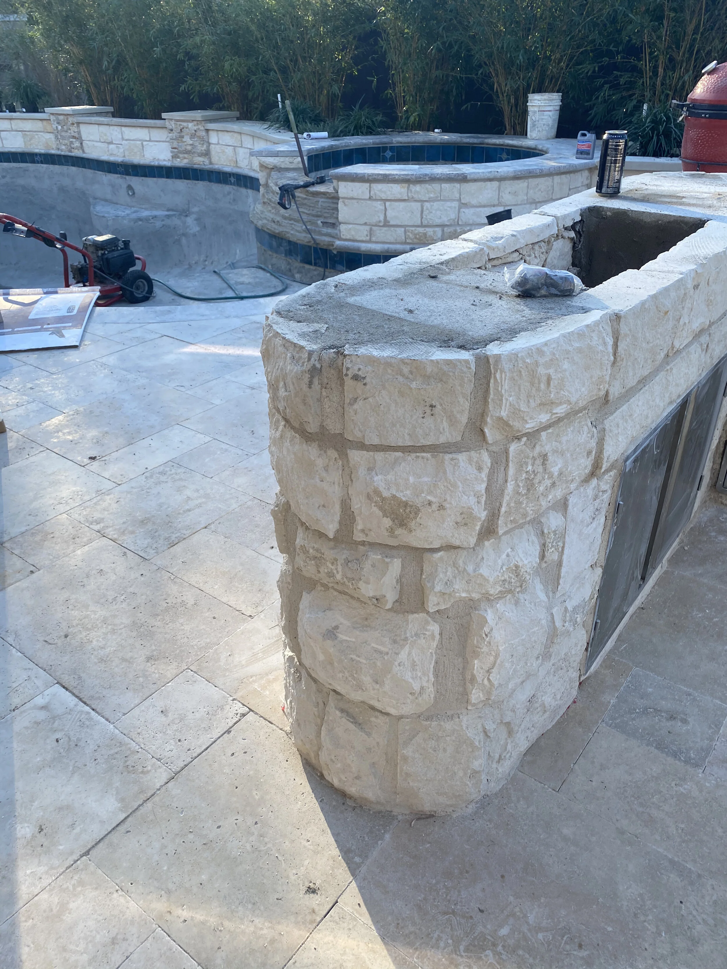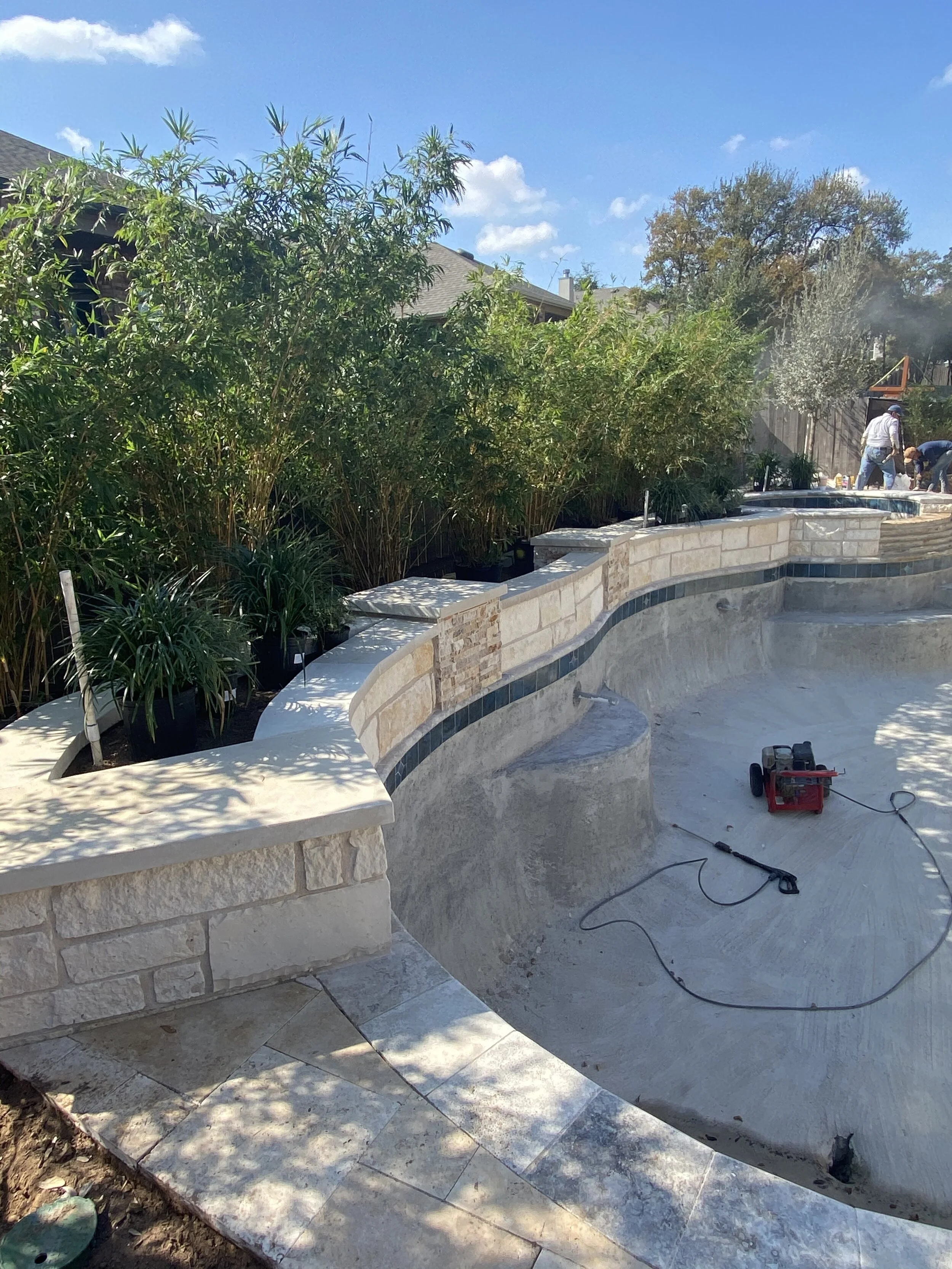 Our team created this stunning backyard paradise in Round Rock Texas, featuring a magnificent swimming pool, a relaxing spa, and a fully equipped outdoor kitchen. The result was simply amazing.