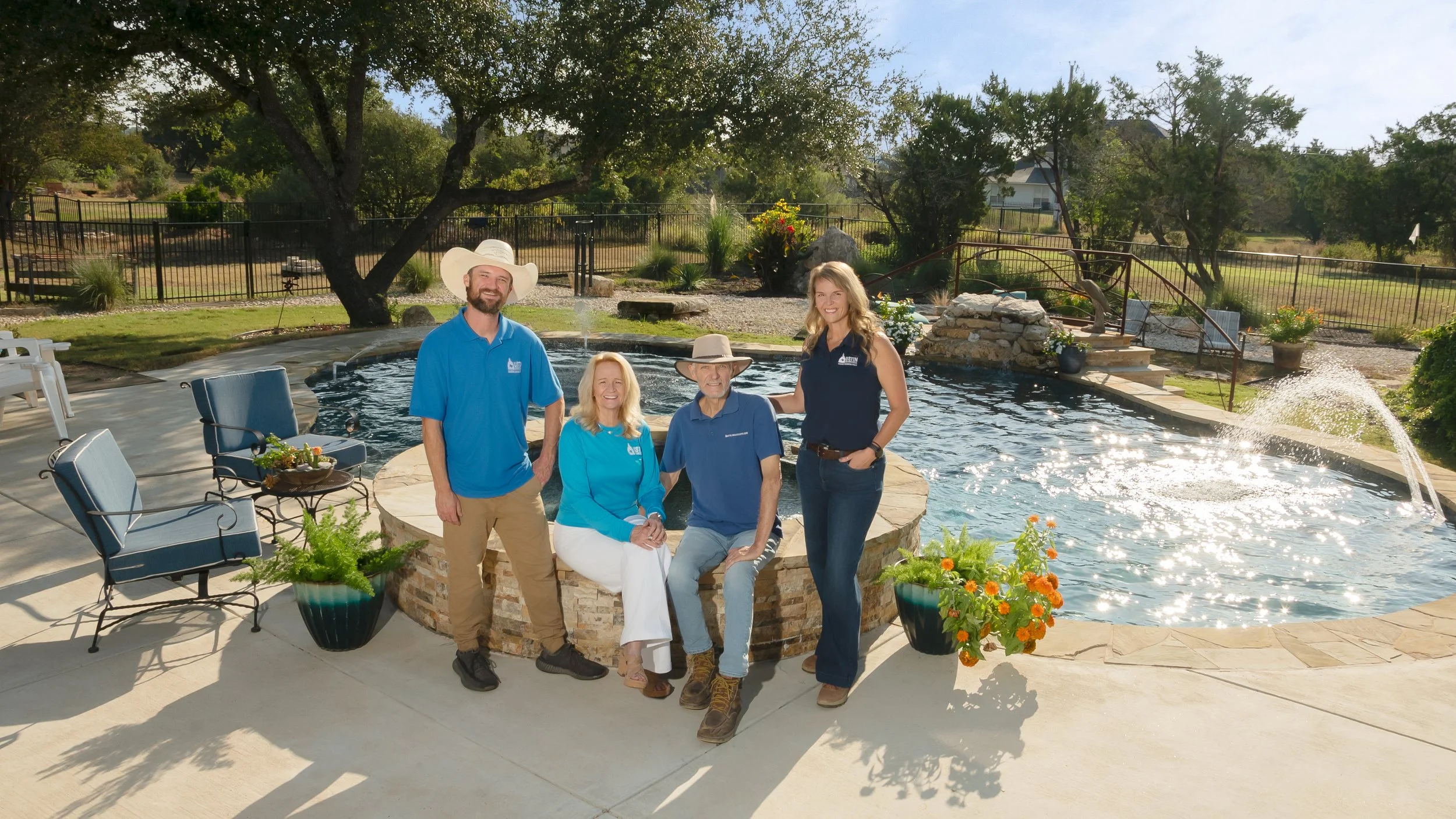 At Austin Dreamscapes, the Blow family turns backyard visions into places folks never want to leave. Jim brings decades of Texas-honed craftsmanship—the steady hand that built this company from the ground up. Bianca is the welcoming face and creative spark, turning conversations into designs that feel personal and lived-in. Trevor grew up in the dirt and dust, driving bobcats before most kids could ride a bike, and now keeps every project running smooth—onsite lead, drone pilot, and the El Capitan of the website and social media, updating the web while backing up a trailer full of stone. And Cindy, the wife and mom at the heart of it all, keeps the books balanced and the whole operation grounded in what matters most. Together, they’re a true family business—building pools, building memories, and crafting the kind of Texas backyards where life slows down and stories begin